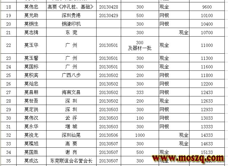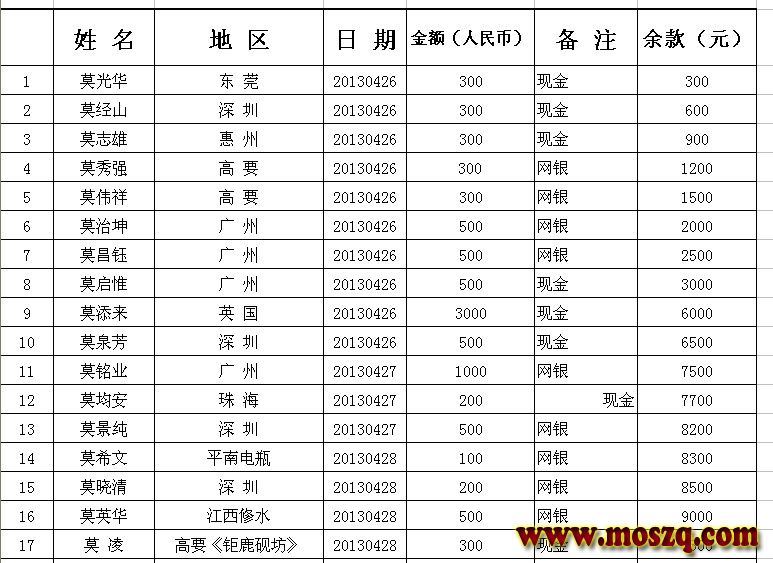 在此特别鸣谢惠州沥林升平酒店莫锡康宗亲于2012年捐款1000元用作启动资金!