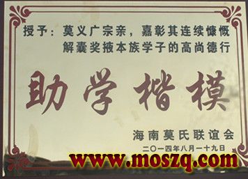 海南莫氏宗亲联谊会发放2014年奖学金